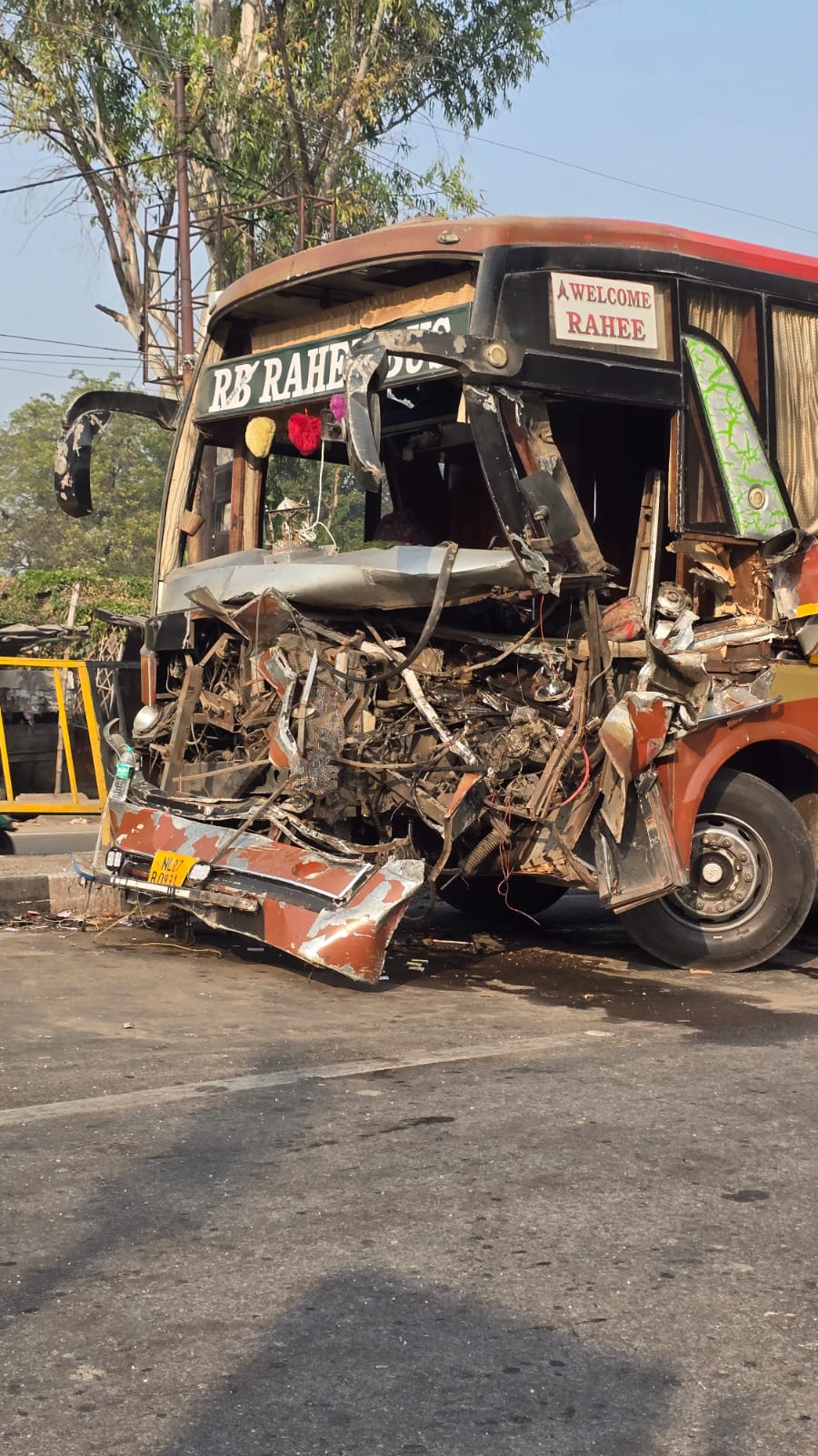 मोहनलालगंज। लखनऊ।बुधवार सुबह लखनऊ–रायबरेली मार्ग पर मोहनलालगंज कस्बे के पास एक बड़ा सड़क हादसा होते-होते टल गया। भारत पेट्रोल पंप के सामने एक निजी स्लीपर बस अचानक ट्राले के पिछले हिस्से में जा भिड़ी। टक्कर इतनी जोरदार थी कि बस का अगला हिस्सा पूरी तरह पिचक गया, लेकिन गनीमत रही कि बस में सवार सभी यात्री सुरक्षित बच गए।प्रारंभिक जानकारी के अनुसार हादसा सुबह करीब 6 बजे हुआ। बताया गया कि सामने चल रहे ट्राले ने अचानक ब्रेक लगाया, जिसके कारण बस चालक वाहन को नियंत्रित नहीं कर सका और तेज रफ्तार बस सीधे ट्राले से जा टकराई। घटना के तुरंत बाद राहगीरों ने डायल 112 पर सूचना दी।सूचना मिलते ही पुलिस मौके पर पहुंची और राहत-बचाव कार्य शुरू किया। पुलिस के मुताबिक दुर्घटना में शामिल वाहन स्लीपर बस (नंबर NL 07 B 0931) और ट्राला (नंबर JH 05 DS 4940) रहे। हादसे में बस चालक मोहम्मद अली निवासी रानीगंज, प्रतापगढ़ को हल्की चोटें आईं। मौके पर मौजूद पुलिस टीम और स्थानीय लोगों की मदद से उन्हें प्राथमिक उपचार दिलाया गया।हादसे के समय बस में कई यात्री सवार थे, जिन्हें पुलिस ने सुरक्षित बाहर निकाला। इसके बाद सभी यात्रियों को दूसरी बसों के माध्यम से प्रतापगढ़ के लिए रवाना कराया गया, जिससे किसी को भी ज्यादा असुविधा न हो।टक्कर के बाद सड़क पर कुछ देर तक यातायात प्रभावित रहा, लेकिन पुलिस व स्थानीय लोगों की सहायता से दोनों क्षतिग्रस्त वाहनों को किनारे हटाकर मार्ग को फिर से चालू कर दिया गया। फिलहाल पुलिस दुर्घटना के सही कारणों की जांच कर रही है और दोनों वाहनों को कब्जे में लेकर आगे की कार्रवाई शुरू कर दी है।स्थानीय लोगों का कहना है कि इस मार्ग पर सुबह के समय भारी वाहनों की तेज रफ्तार अक्सर हादसों का कारण बनती है। पुलिस ने भी चालकों से सतर्कता बरतने की अपील की है।