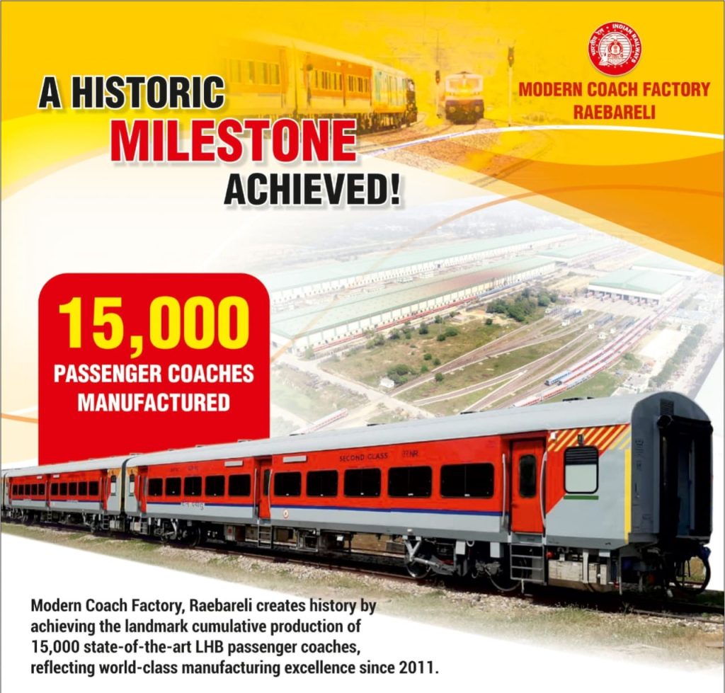 आधुनिक रेल डिब्बा कारखाना (आरेडिका), रायबरेली ने चालू वित्त वर्ष 2025-26 के दौरान 15 दिसंबर 2025 को 15,000वें कोच का निर्माण कर एक महत्वपूर्ण उपलब्धि प्राप्त की है। वित्त वर्ष 2025-26 में अब तक आरेडिका द्वारा कुल 1,310 कोचों का निर्माण किया जा चुका है।