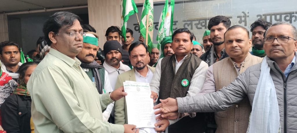 लखनऊ खण्ड-2 शारदा नहर लखनऊ रायबेरली रजबहा में अतिशिघ्र टेल तक पानी पहुंचाया जाये।हैरदगड फीडर नहर पर निकाली गयी सिल्ट को पटरी पर से हटाया जाये।मोहनलालगंज के ग्राम पंचायत उतरावां में ग्राम गढ़ी से पड़रिया मोड़ तक रोड की लम्बाई लगभग 1 किलोमीटर व मदापुर मन्दिर के पास ग्राम कलन्दर खेड़ा रोड से किसान मडी होते हुये लगभग 7 सौ मीटर रोड जिला पंचायत से बनायी गयी थी जिसमें दोनो रोडे जर्जर होने से अवागमन बाधित है जिसके लिये पिछले साल जिला पंचायत कार्यालय लखनऊ पर भा०कि०यू० द्वारा धरना प्रदर्शन करने के बाद कहा गया था कि तत्काल कार्यवाही की जायेगी परन्तु आज तक रोडे नहीं बनायीं गयी है।ब्लाक मोहनलालगंज के ग्राम पंचायत उतरावां के ग्राम रमपुरा से लेकर कमलापुर बिचिलका रोड तक लम्बाई लगभग 1 किलोमीटर रोड मंडी समिति से बनायी गयी थी जो कि अत्यन्त जर्जर होने के कारण आवगमन बाधित है, गाँव की आने जाने की एक मात्र रोड है, उक्त रोड को तत्काल बनाया जाये।साथ ही मांग की है कि ऐसे किसान संगठनों एवं उनके पदाधिकारियों की गहन जांच कराई जाए, जिन व्यक्तियों का आपराधिक इतिहास पाया जाए, उन्हें चिन्हित कर उनके विरुद्ध कठोर वैधानिक कार्रवाई की जाए।किसान संगठनों की आड़ में होने वाली अवैध गतिविधियों पर प्रभावी अंकुश लगाया जाए, ताकि किसान आंदोलन की गरिमा बनी रहे और समाज में शांति एवं विकास का वातावरण कायम रहे। सहित कई मांगो को लेकर धरना प्रदर्शन कर एसीएम थर्ड कमलेश गोयल को मुख्यमंत्री, व जिलाधिकारी संबंधित मांग पत्र सौंपा।जिलाध्यक्ष राजेश रावत ने बताया कि अगर मांगे पूरी नही हुई तो वह प्रदेश स्तर पर बढा आंदोलन करेंगे।इस अवसर पर मंडल अध्यक्ष अनार सिंह, कोषाध्यक्ष बिंदु वर्मा नगर अध्यक्ष इमरान खान आदि लोग उपस्थित रहे।