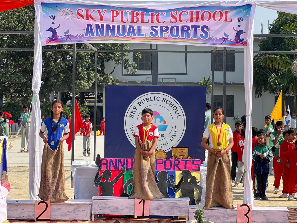 मोहनलालगंज। लखनऊ,स्काई पब्लिक स्कूल परिसर में शुक्रवार को वार्षिक खेल दिवस का आयोजन बड़े ही हर्षोल्लास, अनुशासन और खेल भावना के साथ किया गया। सुबह से ही विद्यालय परिसर उत्सव के रंग में रंगा नजर आया। रंग-बिरंगे हाउस झंडों, अनुशासित मार्च पास्ट और विद्यार्थियों के जोश से माहौल जीवंत हो उठा। इस अवसर पर ब्लू हाउस के विद्यार्थियों ने शानदार प्रदर्शन करते हुए ओवरऑल ट्रॉफी अपने नाम की।कार्यक्रम में मुख्य अतिथि के रूप में डॉ. मधुप मिश्रा प्रधानाचार्य, इंदिरापुरम तथा विद्यालय प्रबंधक आदित्य सिंह यादव मौजूद रहे। वहीं गेस्ट ऑफ ऑनर के रूप में सारिका यादव ने कार्यक्रम की शोभा बढ़ाई। अतिथियों का स्वागत विद्यार्थियों द्वारा स्काउट क्लैप और पुष्पगुच्छ भेंट कर किया गया।कार्यक्रम की शुरुआत विद्यालय कैप्टन शिवांश वर्मा, दिव्यांशी यादव, स्कूल डिसिप्लिन इंचार्ज ऋचा यादव एवं सभी हाउस दलों की भव्य मार्च पास्ट परेड से हुई। अनुशासित कदमताल और एकजुटता ने दर्शकों का मन मोह लिया। इसके पश्चात जूनियर वर्ग के विद्यार्थियों द्वारा प्रस्तुत पी.टी. ड्रिल ने समां बांध दिया।