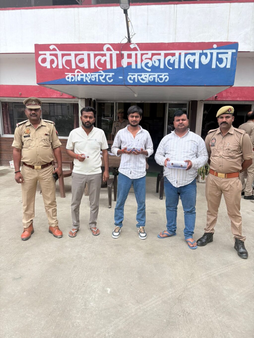 मोहनलालगंज,लखनऊ।मोहनलालगंज पुलिस ने क्षेत्र में हुई ज्वैलर्स से लूट और मारपीट की सनसनीखेज वारदात का महज 24 घंटे के भीतर खुलासा करते हुए बड़ी सफलता हासिल की है। पुलिस ने इस मामले में तीन आरोपियों को गिरफ्तार कर उनके कब्जे से लूटी गई लाइसेंसी रिवाल्वर, जिंदा कारतूस और मोबाइल फोन बरामद किया है, जबकि घटना में शामिल दो अन्य आरोपी अभी फरार हैं, जिनकी तलाश में पुलिस टीमें लगातार दबिश दे रही हैं।प्राप्त जानकारी के अनुसार, पीजीआई थाना क्षेत्र के तेलीबाग निवासी ज्वैलर्स हेमन्त सोनी अपने बड़े भाई शंकर सोनी के साथ सोमवार रात मोहनलालगंज स्थित एक होटल में आयोजित कार्यक्रम में शामिल होने आए थे। कार्यक्रम समाप्त होने के बाद जब दोनों भाई रात करीब 10:30 बजे वापस लौट रहे थे, तभी होटल परिसर में पार्किंग को लेकर कुछ युवकों से कहासुनी हो गई।बताया जाता है कि उस समय मामला शांत हो गया और आरोपी मौके से चले गए, लेकिन उन्होंने रंजिश पाल ली।कुछ देर बाद आरोपी दोबारा कार से लौटे और फुलवरिया मोड़ के पास दोनों भाइयों को रोक लिया। आरोप है कि हमलावरों ने डंडों से दोनों की जमकर पिटाई की, जिससे वे घायल हो गए। इसके बाद बदमाशों ने हेमन्त सोनी की लाइसेंसी 32 बोर रिवाल्वर, मोबाइल फोन और सोने की चेन लूट ली और मौके से फरार हो गए।