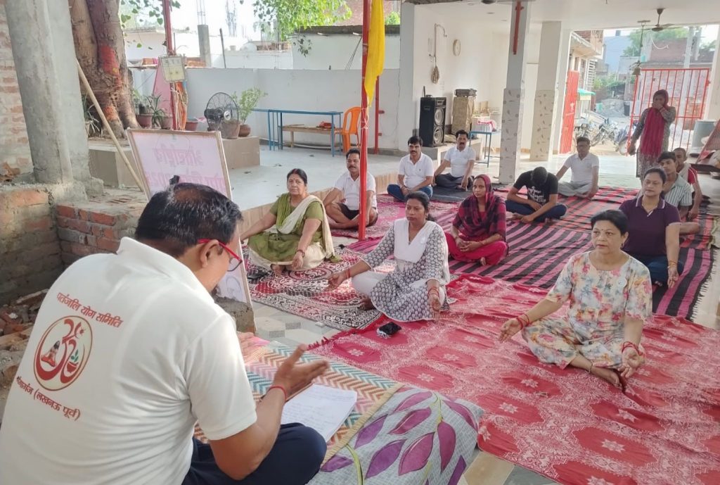 लखनऊ “अंतराष्ट्रीय योग दिवस 2025 के अवसर पर स्वामी विवेकानन्द साप्ताहिक मिलन के द्वारा श्री महाशक्तिधाम मंदिर भुजंगीपुरवा देव रेजीडेंसी तथा तालाब सुंदरीकरण परिवार लौलाई तालाब मधुबन बिहार द्वारा योग दिवस का आयोजन किया गया जिसका पूर्ण सहयोग जय स्वच्छता जय पर्यावरण मित्र लखनऊ, जेएस जीपी वेलफेयर फाउंडेशन द्वारा किया गया। करो योग रहो निरोग के साथ सभी लोगों ने हर्षोल्लास के साथ मनाया।जेएसजेपी की निदेशक सुमन लता गौड़ जी ने बताया कि योग प्रशिक्षक बी एल यादव मौजी के निर्देशन में, जेएसजेपी मित्र यशवीर शरण श्रीवास्तव, अतुल सिंह, विष्वमोहन तिवारी, आलोक कुमार सिंह, दीपक श्रीवास्तव, सुनील शुक्ला, दुर्गेश मौर्य, दिनकर पाल, कृपा शंकर सिंह, शुभम गौड़, विनीत कुमार यादव, गिरधर गोपाल श्रीवास्तव, चंद्रभान यादव , कौशांक यादव, हरीश चौधरी, महेंद्र यादव, रजनी श्रीवास्तव, अमिता सिंह, इंदु सिंह, आशा यादव, सुनीला यादव, मधु त्रिपाठी मंदिर के पुजारी राकेश जी ने कार्यक्रम को सफल बनाने में महत्वपूर्ण योगदान दिया। और उपस्थित सभी लोगों ने शांतिप्रिय ढंग से योग किया। योग शिक्षक श्री बी एल यादव मौजी जी को अंगवस्त्र और जेएसजेपी मित्र का झोला देकर सम्मानित किया गया।
