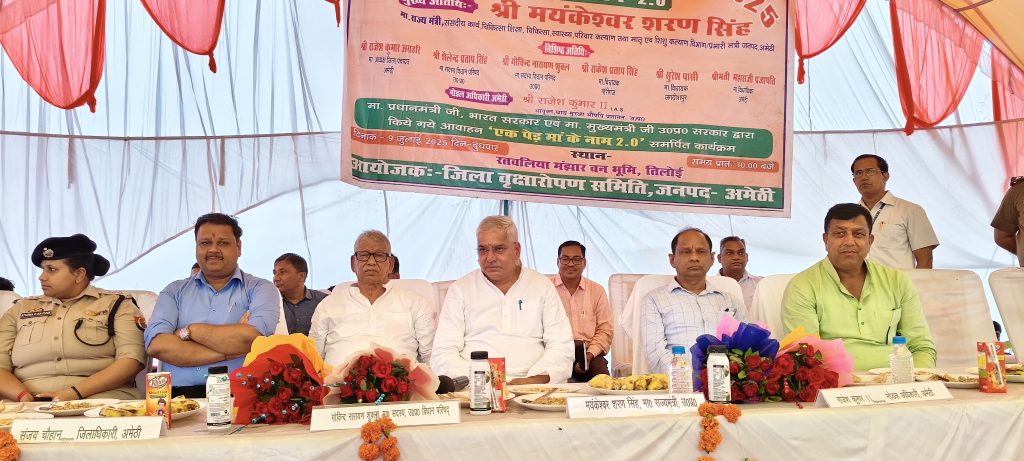 उत्तर प्रदेश में ‘एक पेड़ मां के नाम’ थीम पर 37 करोड़ पेड़ लगाने का विशेष अभियान शुरू हुआ है। अमेठी में इस अभियान की शुरुआत तिलोई विधानसभा के सिंहपुर से हुई। स्थानीय विधायक और प्रदेश के स्वास्थ्य राज्यमंत्री मयंकेश्वर शरण सिंह ने पौधा रोपण कर कार्यक्रम का शुभारंभ किया।जिले में शाम तक 45 लाख पेड़ लगाने का लक्ष्य रखा गया है। दोपहर तक ही 25 लाख पेड़ लगाए जा चुके हैं। वन विभाग के कार्यालय में स्थापित कंट्रोल रूम से पूरी प्रक्रिया की निगरानी की जा रही है।स्कूली बच्चों को संबोधित कियाराज्यमंत्री ने मौके पर उपस्थित स्कूली बच्चों को संबोधित किया। उन्होंने अमेठी की जनता से एक-एक पेड़ लगाने की अपील की। कार्यक्रम में डीएम संजय चौहान, एसपी अपर्णा रजत कौशिक, एमएलसी शैलेंद्र प्रताप सिंह, ब्लॉक प्रमुख प्रतिनिधि मुन्ना सिंह समेत कई भाजपा नेता और प्रशासनिक अधिकारी मौजूद रहे।