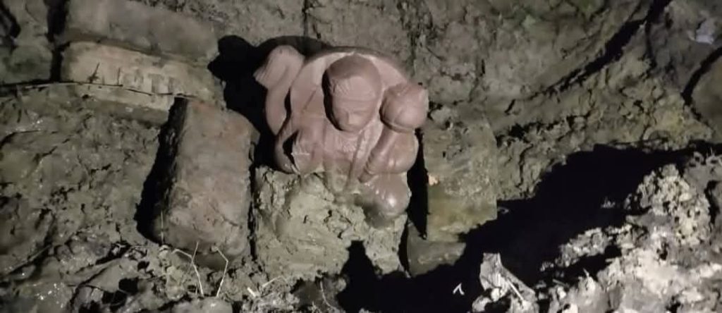 अमेठी*। जनपद के कमरौली थाना क्षेत्र के बनभरिया गांव में बुधवार की शाम उस समय हड़कंप मच गया जब गांव स्थित शीतला माता मंदिर के सामने बने तालाब के सूखे हिस्से से भगवान हनुमान की पत्थर की प्रतिमा निकल आई। प्रतिमा दिखते ही आसपास के लोग बड़ी संख्या में मौके पर पहुंचे और जयकारों के बीच पूजा-अर्चना शुरू कर दी।गांव के निवासी अखिलेश उर्फ़ सोमिल कनौजिया ने तालाब में जमी मिट्टी को हटाया तो उसमें से प्रतिमा दिखाई दी। प्रतिमा निकलने की जानकारी मिलते ही पूरे गांव में यह खबर तेजी से फैल गई और देखते ही देखते वहां भीड़ उमड़ पड़ी। ग्रामीणों ने प्रतिमा के दर्शन किए और मंदिर परिसर में धार्मिक माहौल बन गया।मौके पर पहुंचे ग्रामीणों का कहना था कि यह प्रतिमा प्राचीन प्रतीत हो रही है। हालांकि, प्रतिमा की वास्तविकता को लेकर अभी कोई आधिकारिक पुष्टि नहीं हुई है। क्षेत्रीय लोग इसे धार्मिक आस्था से जोड़कर देख रहे हैं और इसे शुभ संकेत मान रहे हैं।घटना की सूचना मिलते ही कमरौली थाना अध्यक्ष मुकेश पटेल व क्षेत्राधिकारी अतुल सिंह पुलिस बल के साथ मौके पर पहुंचे। अधिकारियों ने प्रतिमा मिलने की जगह का निरीक्षण किया और स्थिति का जायजा लिया। बढ़ती भीड़ को देखते हुए प्रशासन ने वहां पुलिस तैनात कर दी है ताकि किसी प्रकार की अव्यवस्था न उत्पन्न हो।पुलिस अधिकारियों का कहना है कि शांति व्यवस्था बनाए रखना प्राथमिकता है। वहीं, प्रतिमा की उत्पत्ति और इसकी ऐतिहासिकता की जांच आगे की प्रक्रिया के तहत कराई जाएगी। प्रशासनिक अधिकारियों ने ग्रामीणों से अपील की है कि वे अफवाहों पर ध्यान न दें और शांति बनाए रखें।गांव में प्रतिमा मिलने की घटना को लेकर लगातार लोगों की भीड़ स्थल पर जुट रही है। ग्रामीणों के बीच इस घटना को लेकर उत्सुकता और चर्चा का माहौल बना हुआ है।