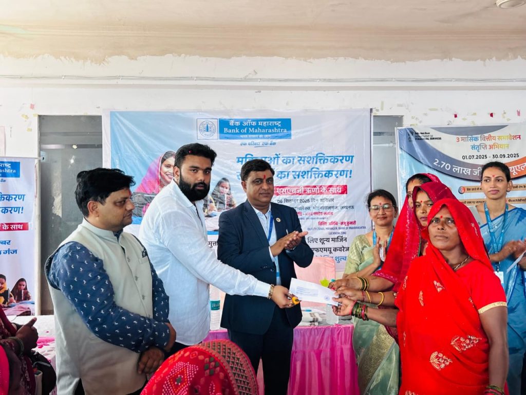 मोहनलालगंज।लखनऊ,मोहनलालगंज कस्बे के पाण्डेय कॉम्प्लेक्स स्थित बैंक ऑफ महाराष्ट्र शाखा की ओर से शनिवार को महिलाओं का सशक्तिकरण, समुदायों का सशक्तिकरण विषयक भव्य कार्यक्रम का आयोजन किया गया। इस मौके पर स्वयं सहायता समूह की महिलाओं को विभिन्न सरकारी योजनाओं की जानकारी दी गई साथ ही 17 समूहों की महिलाओं को लोन स्वीकृति पत्र प्रदान किए गए।कार्यक्रम का शुभारंभ मुख्य अतिथि नगर पंचायत मोहनलालगंज के चेयरमैन प्रतिनिधि एवं नारडको के उपाध्यक्ष श्री अजय पांडेय सत्यम, विशिष्ट अतिथि श्री अमित गोयल (क्षेत्रीय प्रबंधक, बैंक ऑफ महाराष्ट्र) एवं श्रीमती संजू कुमारी उप क्षेत्रीय प्रबंधक, बैंक ऑफ महाराष्ट्र ने दीप प्रज्वलित कर किया। शाखा प्रबंधक श्रीमती भारती मिश्रा ने सभी अतिथियों का स्वागत कर कार्यक्रम की रूपरेखा प्रस्तुत की।विशिष्ट अतिथि श्रीमती संजू कुमारी ने स्वयं सहायता समूहों के लिए सरकार द्वारा संचालित योजनाओं की विस्तृत जानकारी दी। वहीं श्री अमित गोयल ने महिलाओं को लेखा-जोखा सुव्यवस्थित रखने की सलाह दी और आर.एफ., सी.आई.एफ. एवं लोन संबंधी योजनाओं की जानकारी साझा की।मुख्य अतिथि श्री अजय पांडेय सत्यम ने महिलाओं को प्रेरित करते हुए कहा कि –”स्वयं सहायता समूह एक ऐसा सशक्त प्लेटफार्म है, जिसने गांव-गांव में महिलाओं को आत्मनिर्भर बनाया है। किसी समूह ने पापड़, अचार और मुरब्बा का व्यवसाय शुरू किया, तो किसी ने वर्मी कम्पोस्ट खाद बनाकर मिसाल कायम की। कहीं महिलाएं अगरबत्ती, मोमबत्ती, धूपबत्ती बनाकर आगे बढ़ीं, तो कहीं हस्तशिल्प, कढ़ाई, सिलाई, कपड़ा व्यवसाय, मशरूम की खेती, डिटर्जेंट-साबुन निर्माण और छोटे उद्यम कर आत्मनिर्भर बनीं।उन्होंने आगे कहा कि आप सब में भी वही क्षमता है, जरूरत है सिर्फ हिम्मत और ईमानदारी से काम करने की। आलोचकों की आलोचना सुनकर भी संगठित होकर मेहनत करेंगे तो न सिर्फ खुद आत्मनिर्भर बनेंगी बल्कि दूसरों को भी रोजगार देंगी।कार्यक्रम के दौरान 17 स्वयं सहायता समूहों को ऋण स्वीकृति पत्र वितरित किए गए। इस अवसर पर मंच का संचालन राष्ट्रीय युवा पुरस्कार विजेता अवधेश कुमार ने किया।कार्यक्रम में विशेष रूप से श्री मनीष पांडे प्रदेश प्रवक्ता, उ.प्र.मा. शिक्षक संघ श्री प्रवीण यादव कृषि विभाग, बैंक ऑफ महाराष्ट्र आंचल कार्यालय श्री उज्ज्वल शाखा प्रबंधक, कल्ली पश्चिम विशेष सहायक श्री जगराम सिंह, मन्नू राय, शिवम् साहू सहित बड़ी संख्या में सहयोगी व स्थानीय लोग उपस्थित रहे।